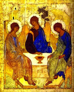 I love that idea of God in community and conversation, through all time. Like the famous Rublev icon of the Holy Trinity, God the Creator, Christ, and Spirit, are seated around a table, feasting and spinning stories about creation, about healing, about the destruction of things that need to die, about resurrection, and life going on, and the stories going on.